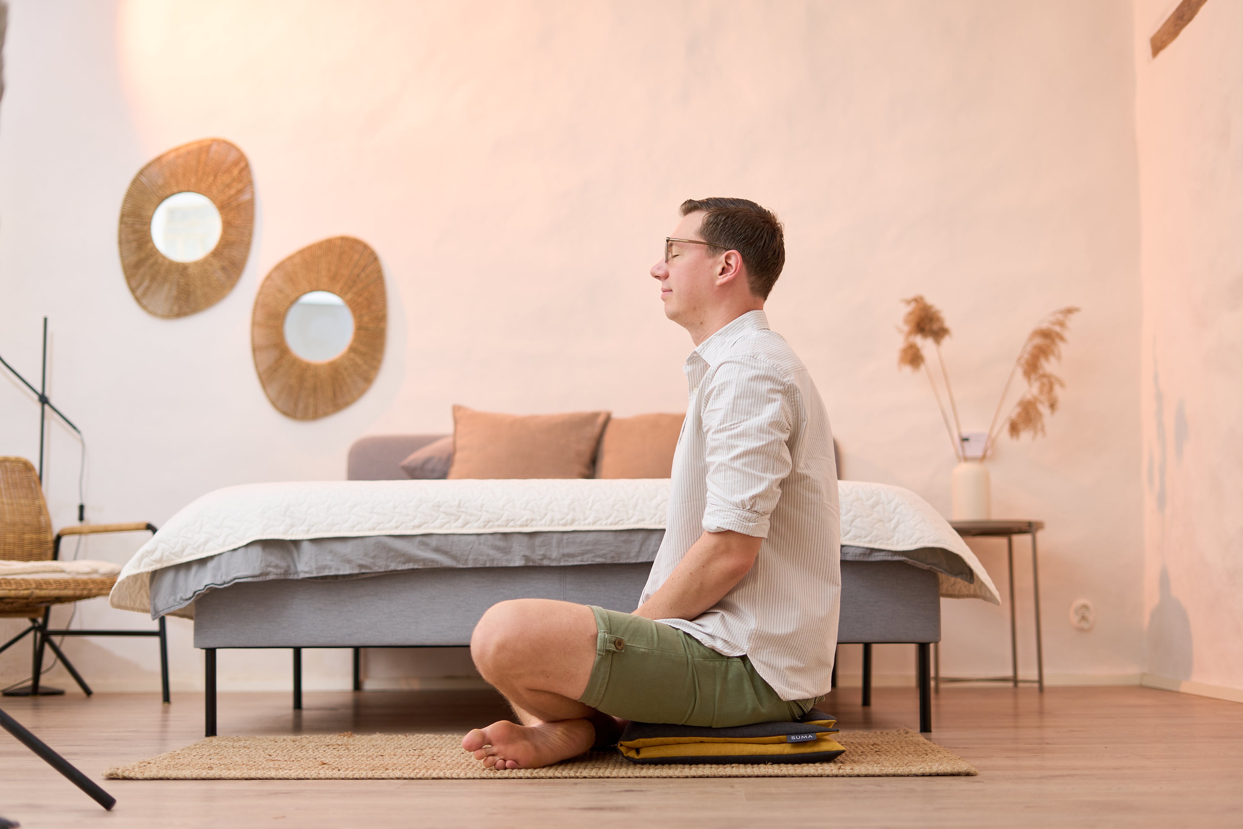 SUMA cushions enable you to take the most optimal sitting position (~4 degrees forward tilt, enough height, more neutral pelvic position) for getting in focus. Effectively reducing physical pain and making your practice more effective.